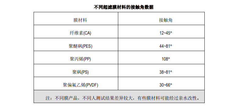 人們相信,親水性好的膜材料就不容易被污染,污染后也容易清洗恢復(fù)。親水性往往采用接觸角來衡量。
